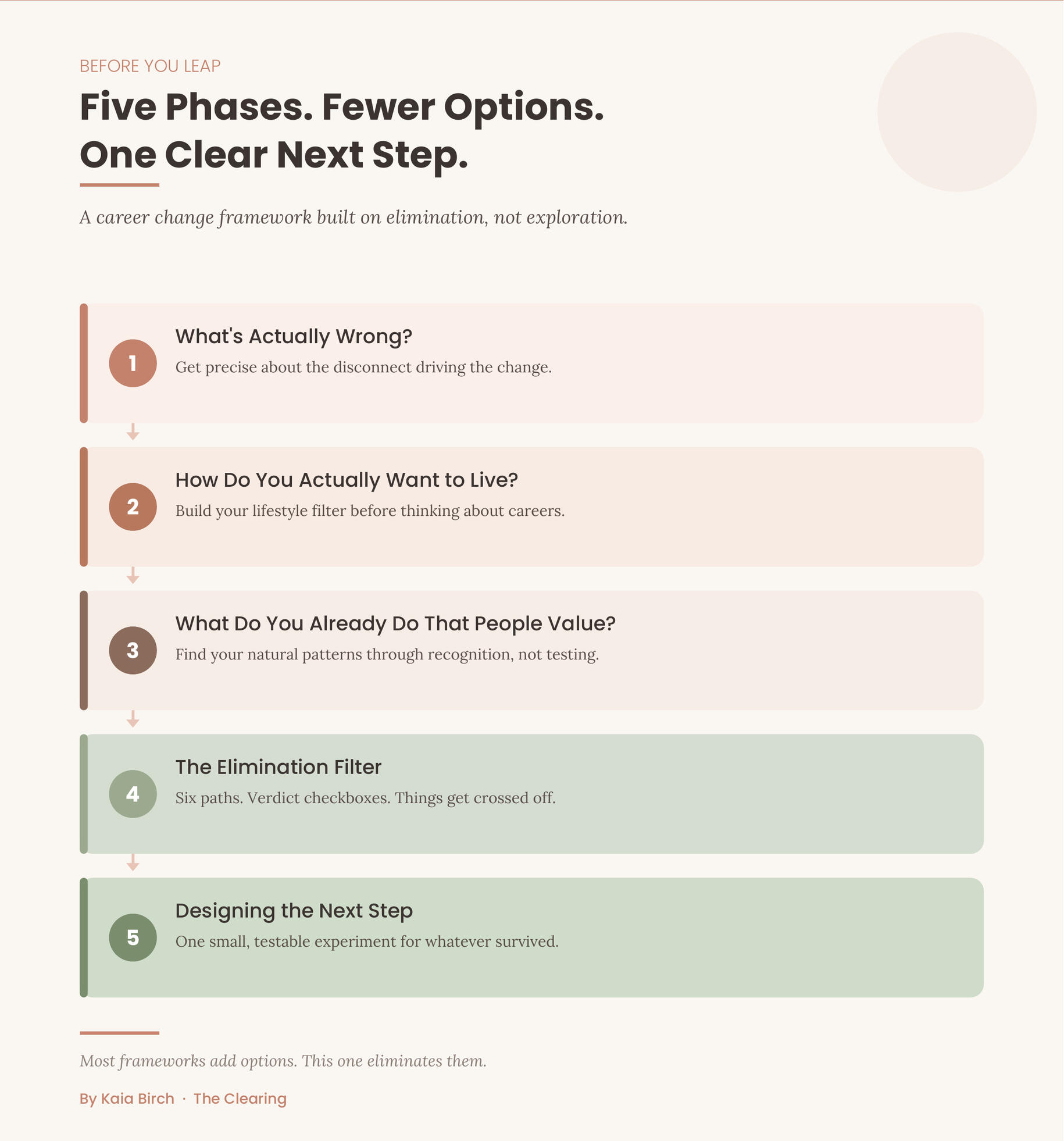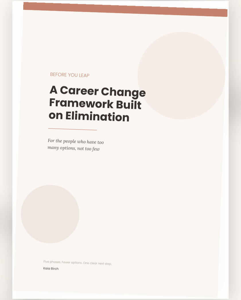 You've been thinking about a career change for a while. Months, maybe years. You've read the books, taken the quizzes, made the lists.You've explored every angle.And you're still stuck.That's not a motivation problem. It's a direction problem. You don't need more options. You need fewer.